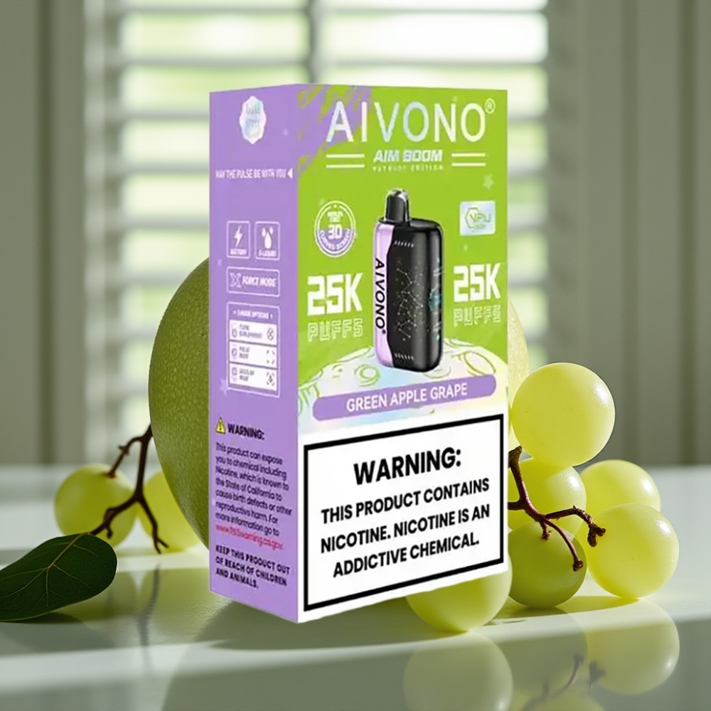 Aivono AIM BOOM 25000 Puffs 0%-5% Nikotin 28ml E-Liquid 650mAh Grøn Æble Drue