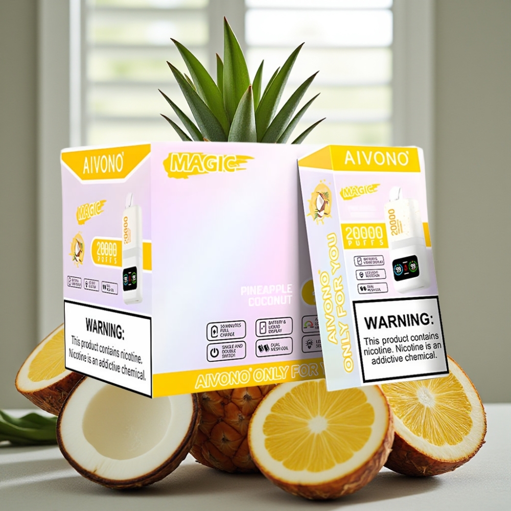 Aivono AIM MAGIC 20000 Puffs – 26ml E-væske, 0-5% Nikotin, 600mAh Batteri, Ananas Kokos