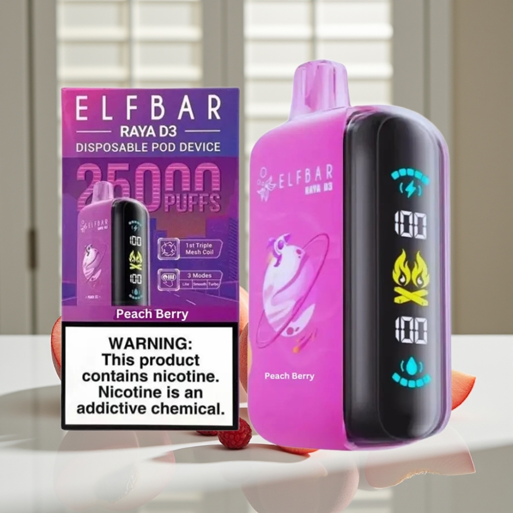 ELF BAR RAYA D3 25000 Puffs Engangs Vape (850mAh, 23ml, 5%) – Fersken Bær
