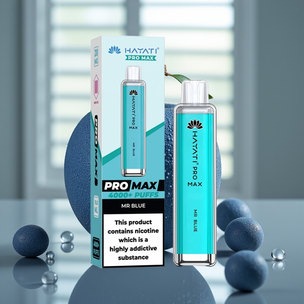 Hayati Pro Max 4000 Puffs Engangsdamp Hr. Blå – 2%/5% Nikotin, 1400mAh, Genopladelig