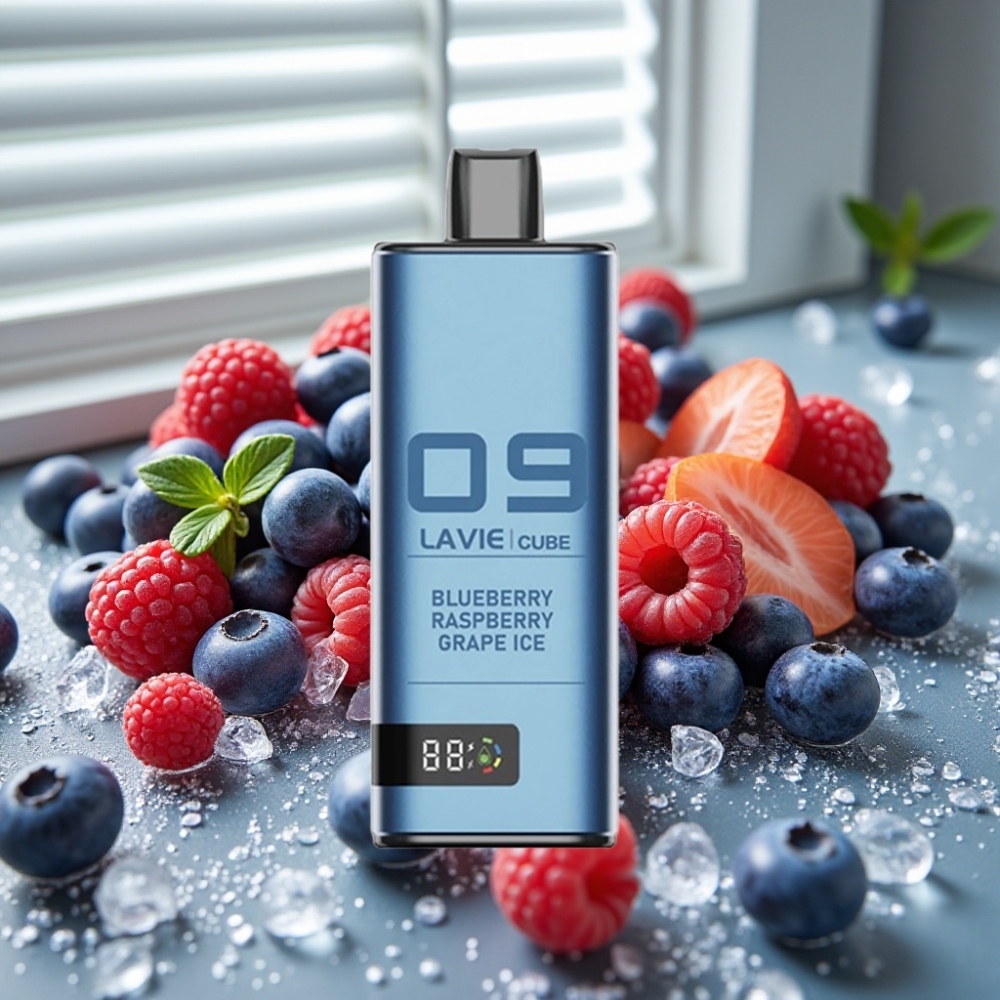 Lavie Cube 20000 Puffs Engangsdamp Blåbær Hindbær Vindrue Is – 20000 Puffs, 2%/5% Salt Nicotine, 28ML, Type C
