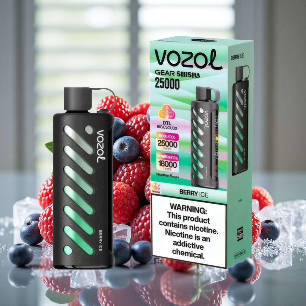 VOZOL Gear Shisha 25000 Puffs – 30 Lækre Smag, Dual Mesh, 1000mAh, Bær Is