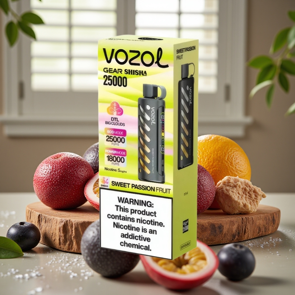VOZOL Gear Shisha 25000 Puffs – 30 Lækre Smage, Dual Mesh, 1000mAh, Sød Passionfrugt